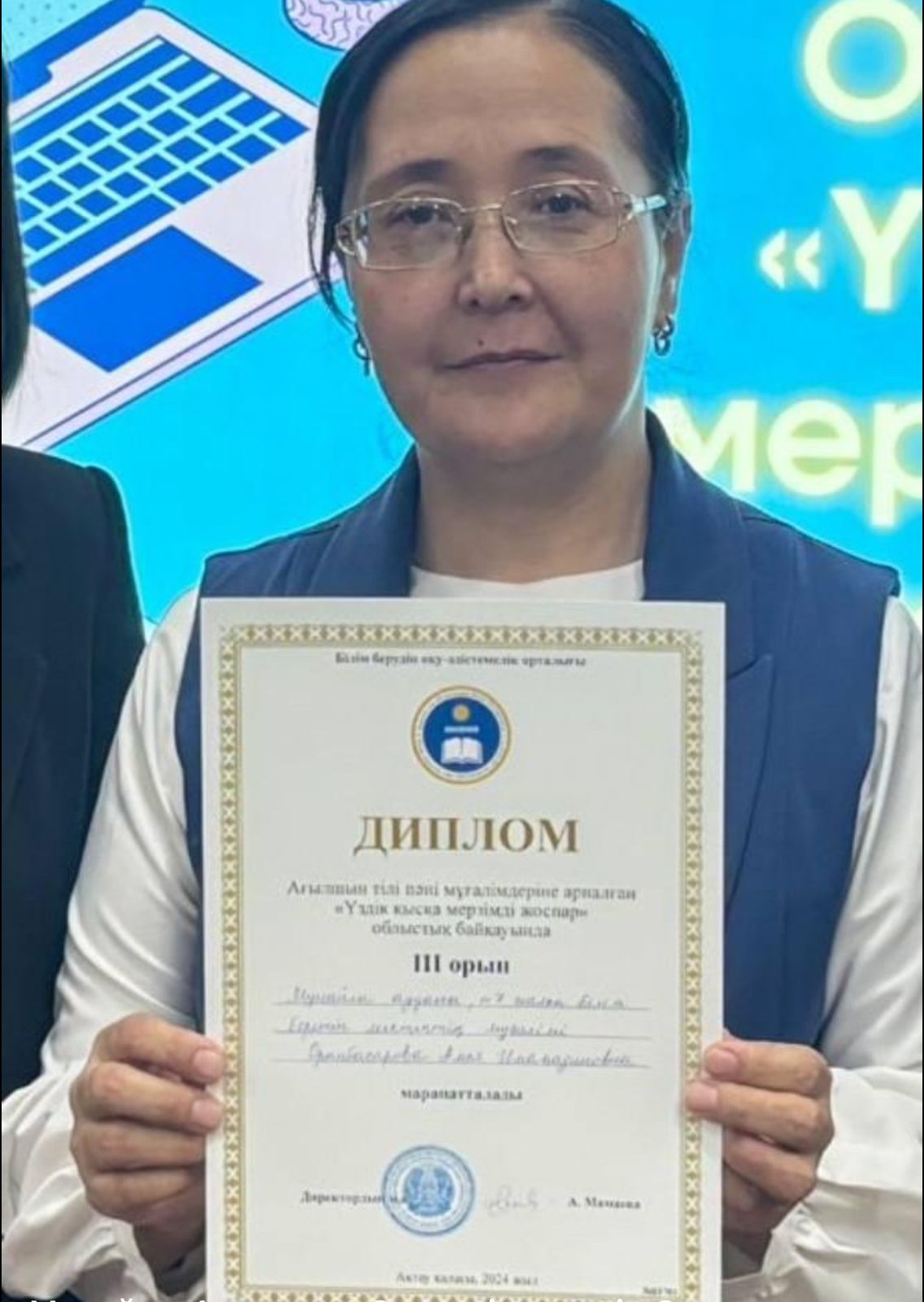 мектебіміздің ағылшын тілі пәні мұғалімі Орынбасарова Алия Имамадиновна жүлделі ІІІ орынға ие болды.