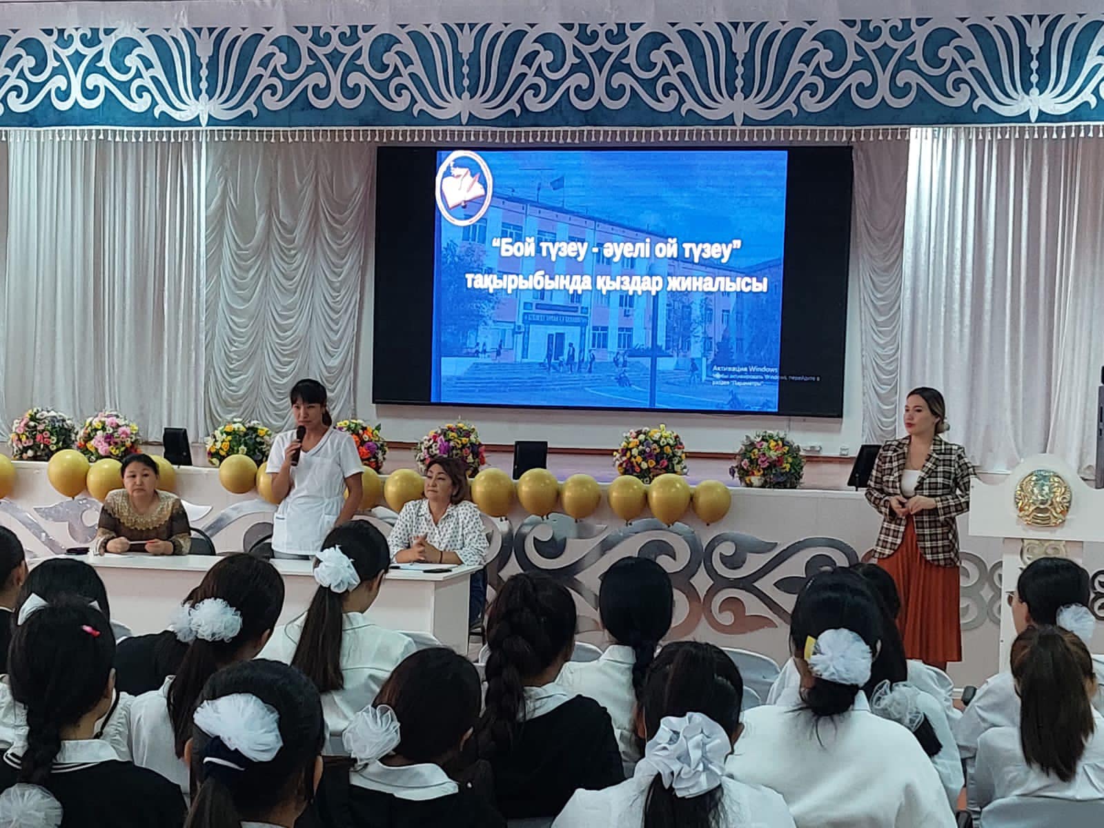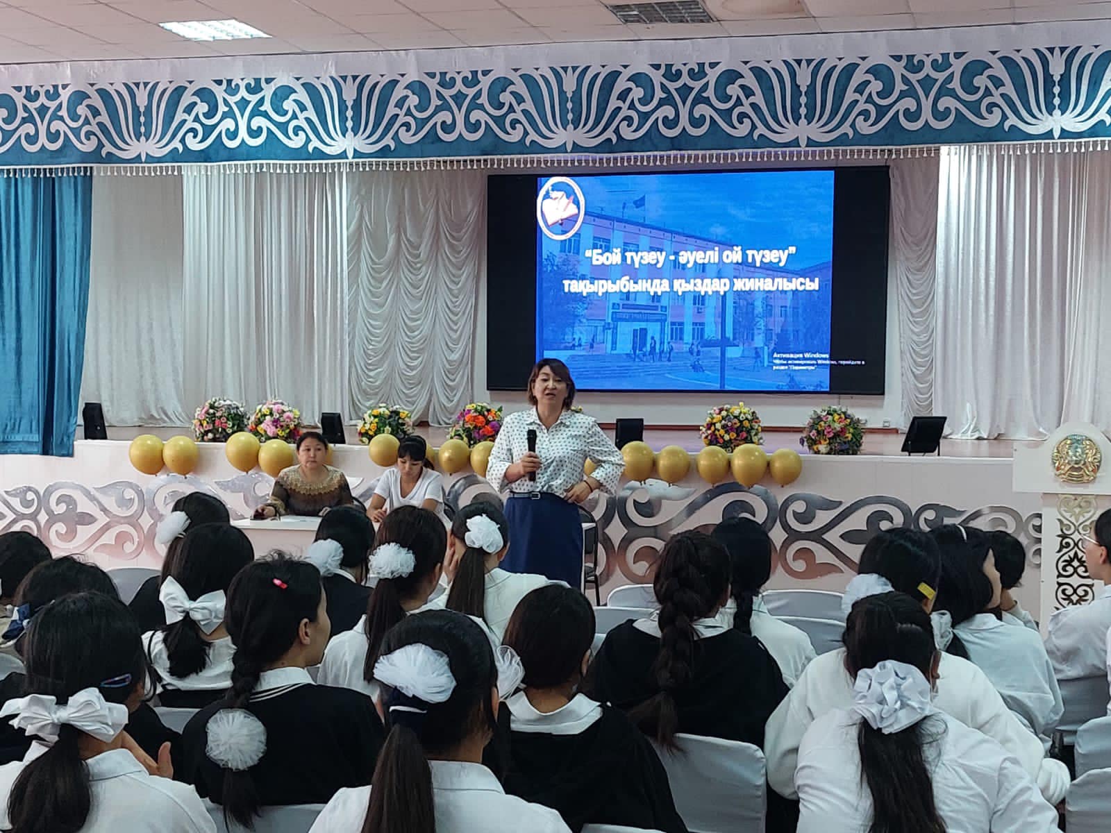 Жоғары сынып оқушыларына қыздар жиналысы өткізілді. Жиналысқа мектеп ДТЖО- лары Д.С.Танатарова, У.Ж.Жарасбаева, педагог - психолог Г.Т.Картбаева және мектеп медбикесі қатысты.