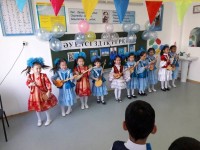 Концерттік бағдарлама барысында көрнекілік ретінде слайдтар қолданылды.о Оқушылар ән орындап, би билеп өнерлерін көрсетіп, бағдарлама өз деңгейінде өтті.