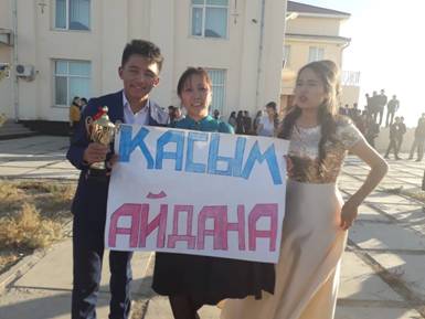 18.10.18ж күні өткен аудандық "Күз ханзадасы" мен "Күз ханшайымы" атты байқауда бас жүлде иеленген №7 орта мектеп оқшылары Жақсылықбаев Қасымхан және Дүйсебаева Айдана. Жетекшісі Елешова Парша.