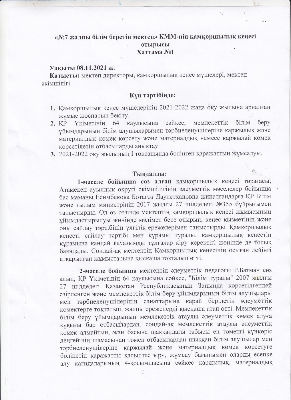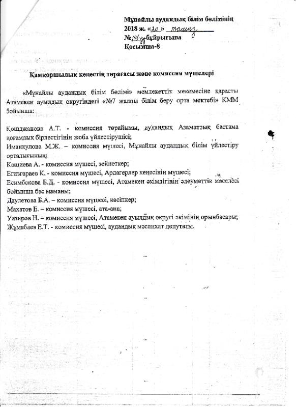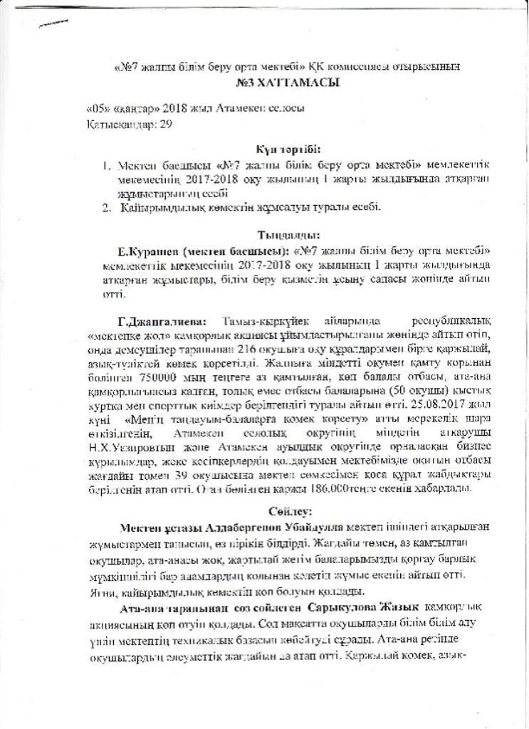 «Мұнайлы ауданы Атамекен селосының №7 жалпы білім беру орта мектебі» КММ-сі