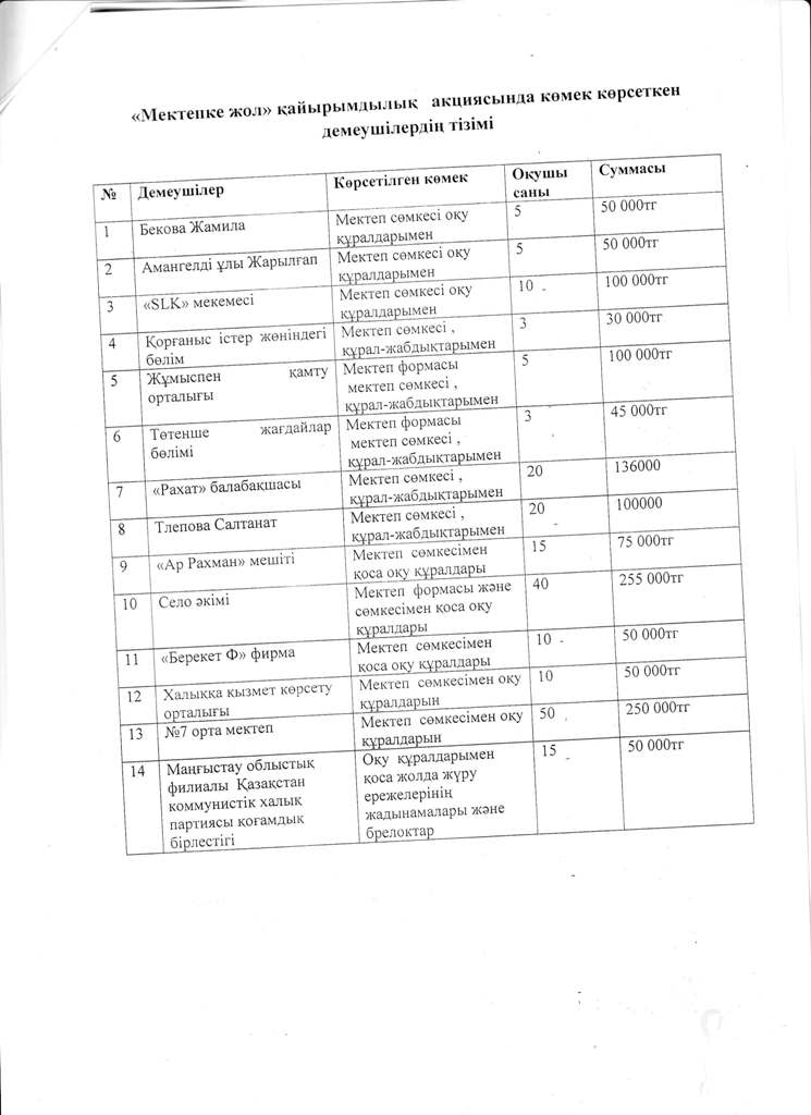 01.08-30.09.2018 жыл аралығында өткізілген «Мектепке жол» акциясы туралы ақпарлама