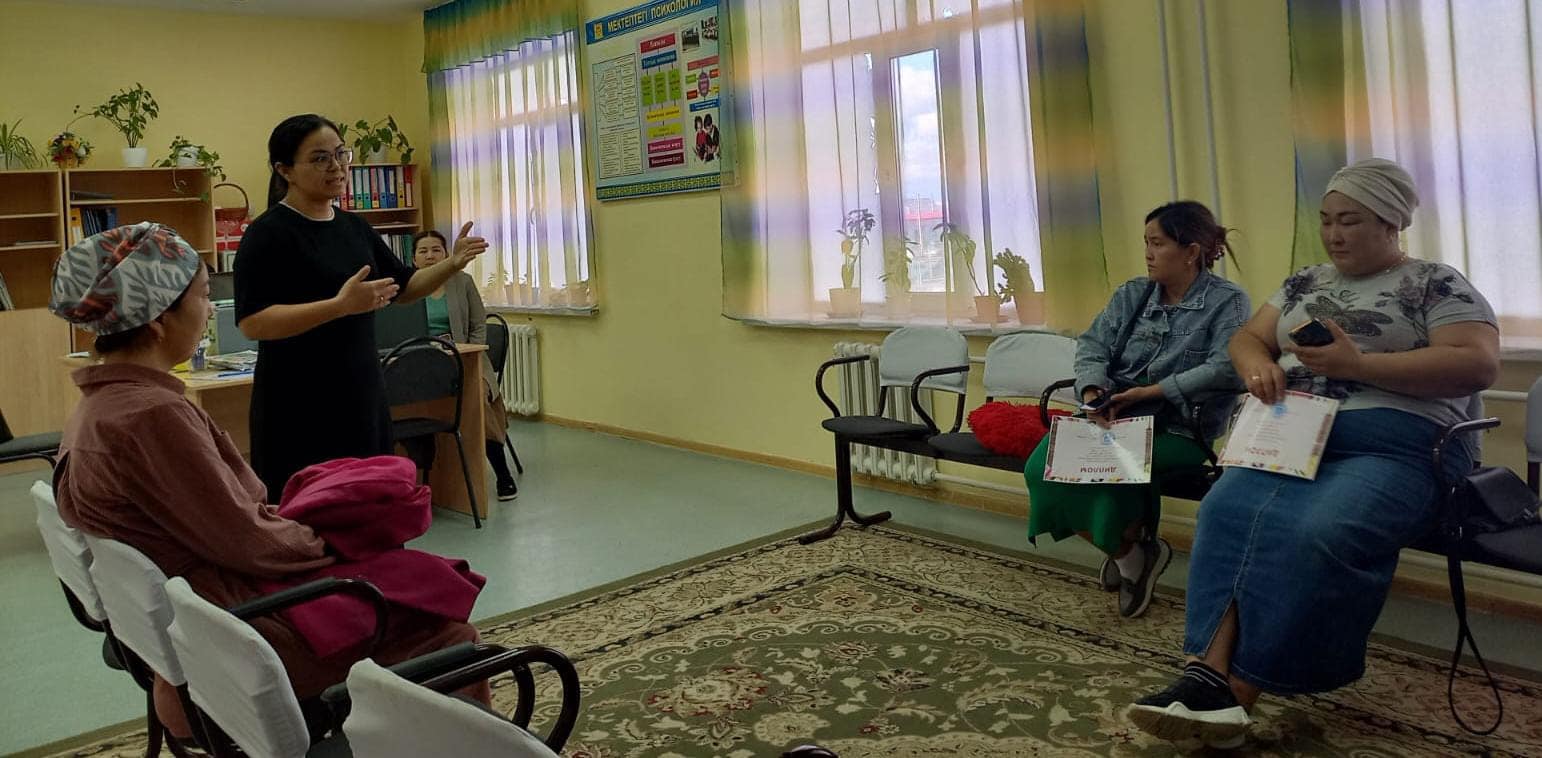 Ата - ананың бала көңілін таба білуіне ой қозғау, өзін-өзі тануына бағыт беру, ата-аналармен балаға рухани тәрбие берудегі отбасының рөлі жайлы пікір бөлісу мақсатында мектебімізде «Отбасындағы психологиялық өзара қарым-қатынас» тақырыбында кездесу өткізілді. Кездесу мектебіміздің «Кәсіби бағдар беру» мамандарымен біріккен түрде ұйымдастыруымен өткізілген «Менің болашақ мамандығым» тақырыбында сурет байқауы марапаттарын табыстаумен жалғасын тапты.
