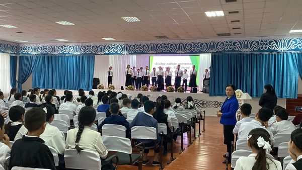 Ашылу салтанаты 7 “Е” сыныбының орындауында “Атамекен” патриоттық әнімен басталды.