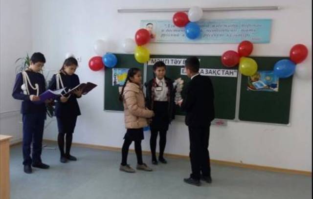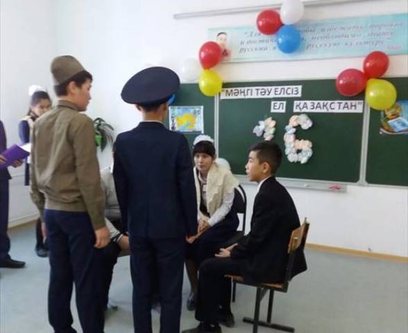 15.12.17ж күні «№7 жалпы білім беру орта мектебі» жұмыс жоспарына сәйкес, «Мəңгі тəуелсіз ел Қазақстан» тақырыбында 8 «в» сынып оқушылары ашық тәрбие сабағын өткізді. Өткізген сынып жетекшісі: Тулемисова Кларохон.