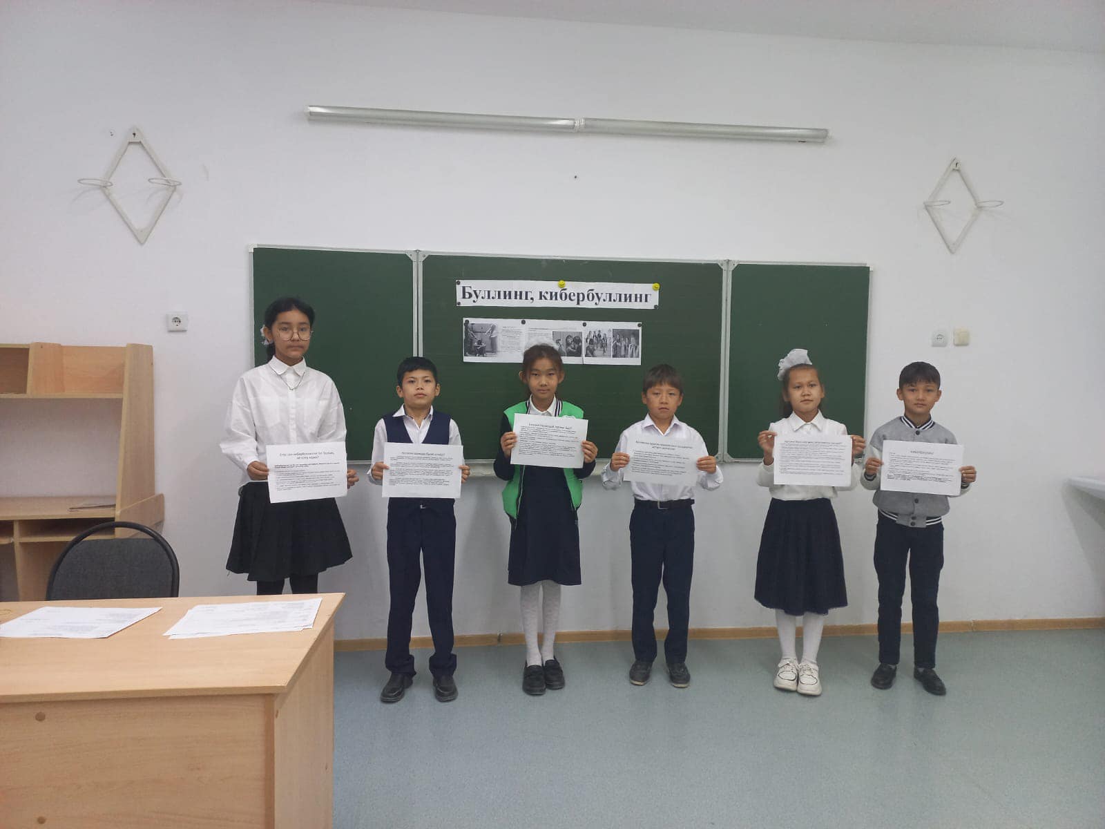 “Қатыгездік және зорлық - зомбылықсыз балалық шақ” ақпараттық науқаны аясында 1-11 сыныптар бойынша “Зорлық - зомбылыққа жол жоқ!”, ”Буллинг деген не?”, “Кибербуллингтің алдын алу”, “Киберқауіпсіздік мәселелері” т.б тақырыптарында бірыңғай сынып сағаттары өткізілді