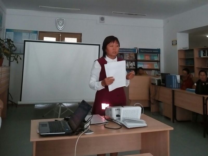 Қазақ тілі мен әдебиеті пәнінің мұғалімі Едилова Гулзира Сейтовна «Жаңартылған білім беру мазмұны – заман талабы» атты баяндама оқыды.