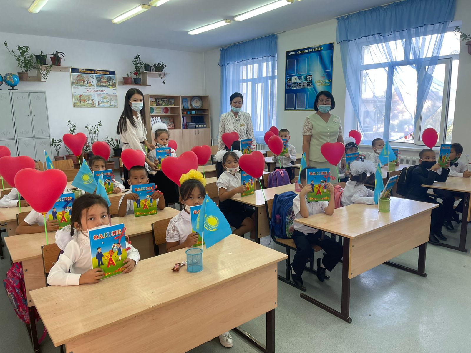 1 қыркүйек Білім күні мерекесіне орай «Кел, балалар, оқылық!» атты салтанатты жиыны болып өтті. Салтанатты рәсім ҚР Мемлекеттік Гимнмен ашылды. Салтанатты жиынға мектеп директоры К.Д.Нурбаева және ұстаздар, 1 – сынып оқушылары мен ата – аналар қатысты. Алғашқы құттықтау сөз білім ордасының басшынсына берілді. Биыл ғана білім ордасының табалдырығын аттаған бүлдірщіндерімізге мектеп директоры арнайы «Әліппе» кітабын табыстады. Мерекелік көңіл – күймен әндер шырқалды.