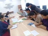 20.10.2018 ж сағ 10:00 Үштілділік аясында №7 орта мектепте ағылшын тілі және жаратылыстану пәні мұғалімдері біріккен "Let's speak English" атты тренинг болып өтті, тренинг тақырыбы "At the shop". тренер Н.Юсупова Тренингте" At the shop" тақырыбына диалогтар берілді мұғалімдер рөлді сомдап ойнады. Келесі сенбіде болатын сабаққа ұсыныстарын білдірді.