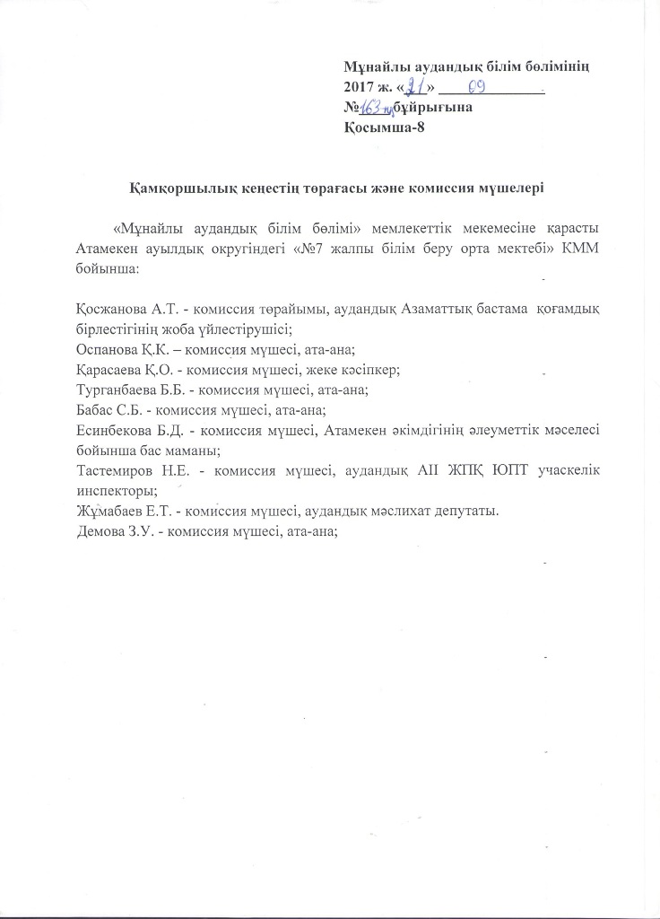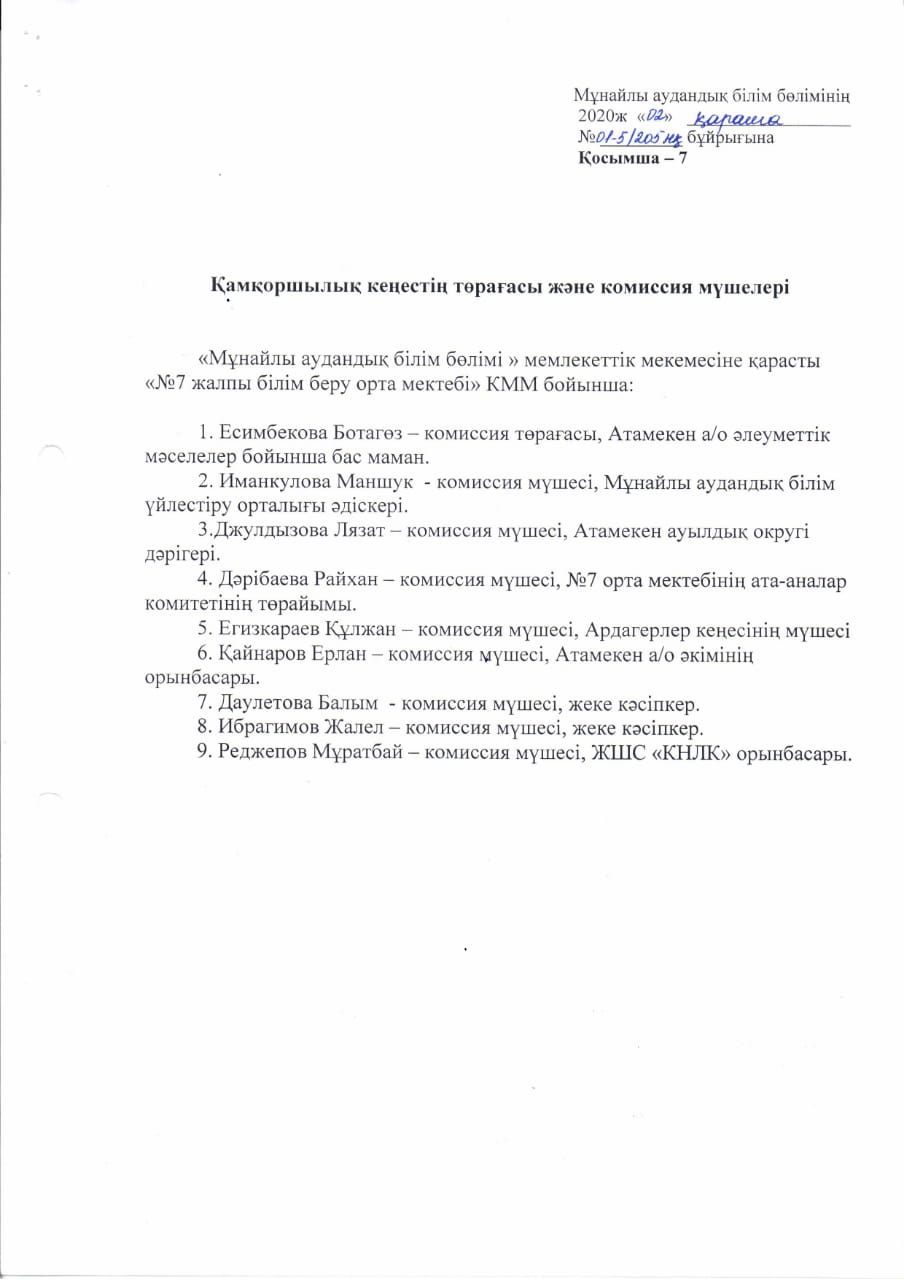 «Мұнайлы ауданы Атамекен селосының №7 жалпы білім беру орта мектебі» КММ-сі