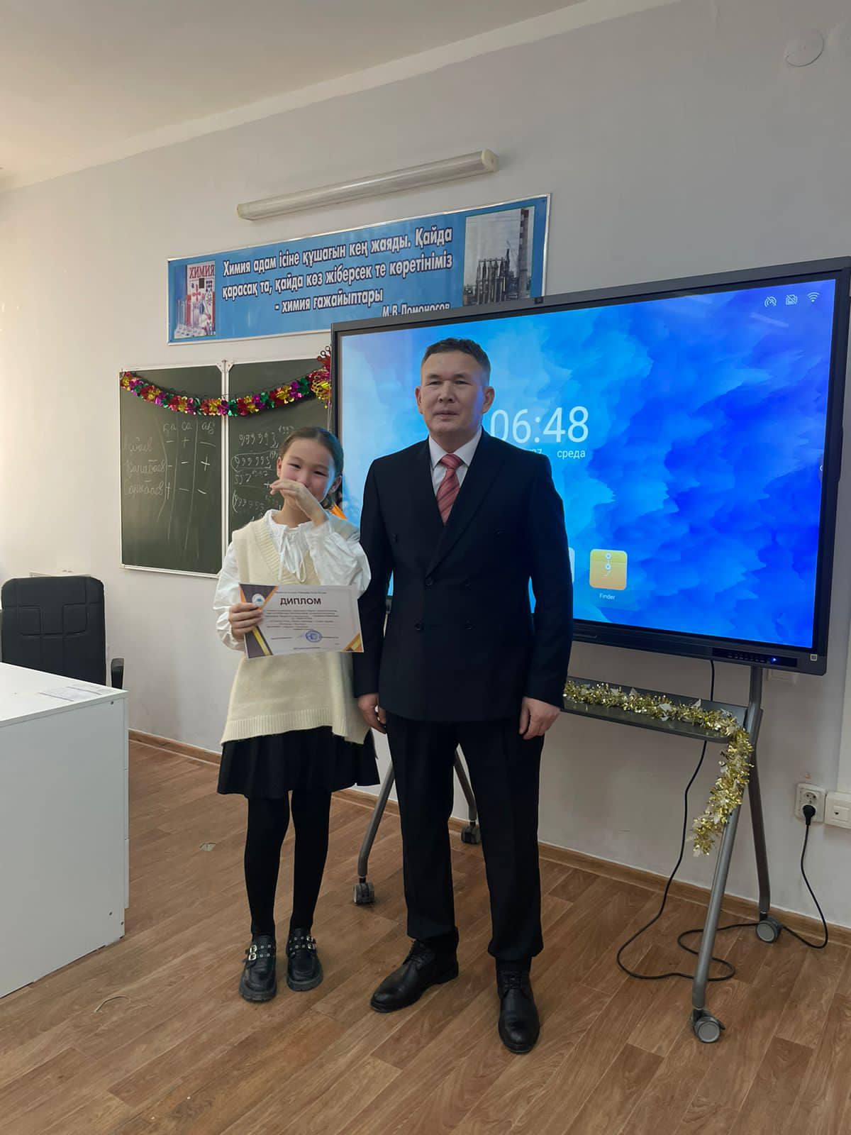 “Зерде” республикалық ғылыми жобалар конкурсының аудандық кезеңінде “математика” секциясында 6 “А” сынып оқушысы Закария Ақмерей IIIорын иеленді, жетекшісі Әбдірхан Салтанат.