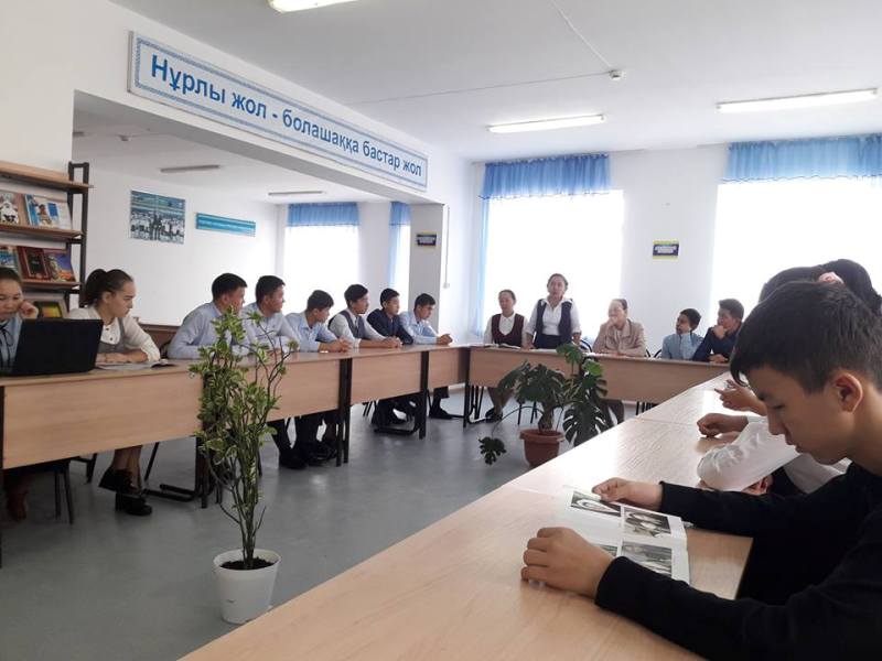 Қазанның 25-і күні тарих пәні мұғалімі А.Каракулова жəне тәрбие ісі жөніндегі орынбасары Д.Танатарованың ұйымдастыруымен "Рухани жаңғыру: болашаққа бағдар" мақаласын талдауға арналған дөңгелек үстел өтті. Дөңгелек үстелге тарих пәні мұғалімдері, директордың оқу ісі жөніндегі орынбасары Т.Махатова жəне 10-11-сынып оқушылары қатысты.