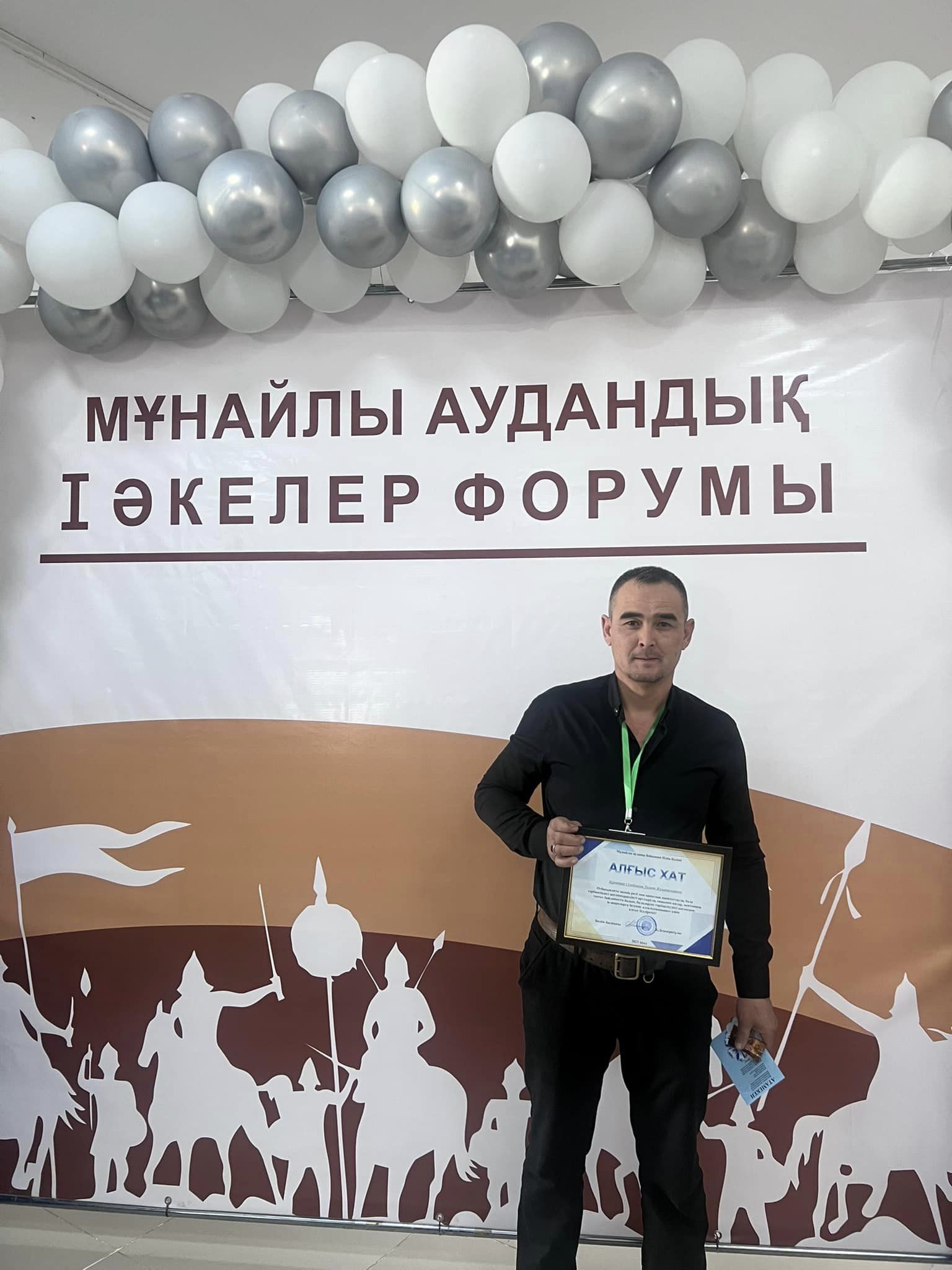 Форум соңында мектеп өмірімен үнемі байланыста отыратын белсенді әкелер Мұнайлы аудандық білім бөлімі басшысының АЛҒЫСЫМЕН марапатталды. Осындай алғысқа мектебіміздің “Ата - аналарды педагогикалық қолдау” жобасының мүшесі Сулейменов Талгат Жумакасымович ие болды.