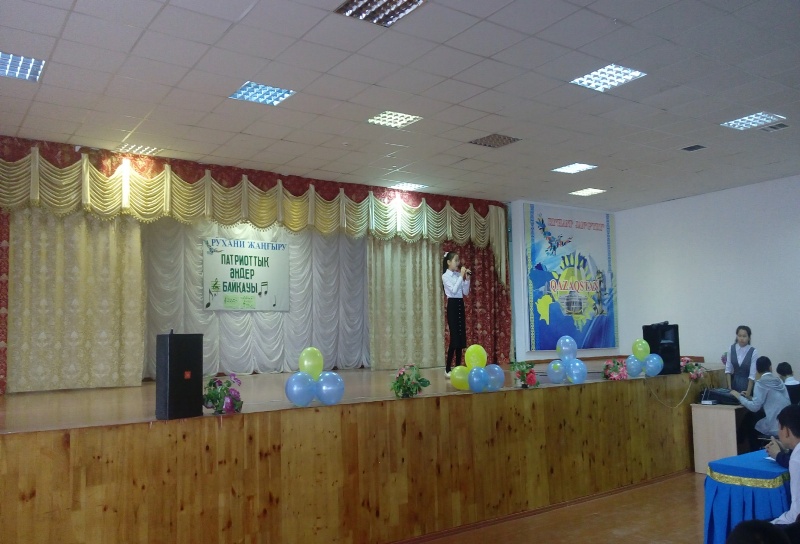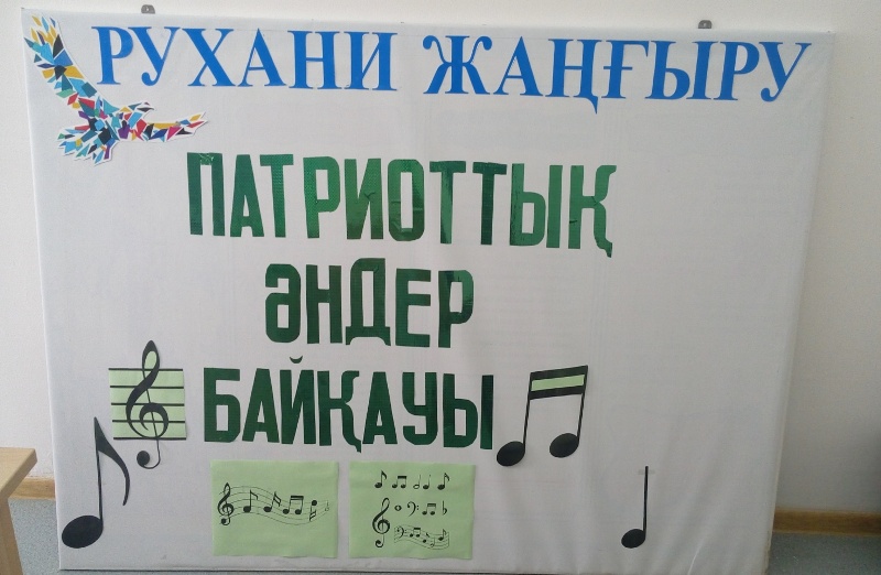 29.11 күні «№7 жалпы білім беру орта мектебі» КММ – сінде РУХАНИ ЖАҢҒЫРУ аясында мектеп оқушылары арасында «Патриоттық әндер» байқауы болды.Мемлекет басшысы Н.Назарбаев "Болашаққа көзқарас: қоғамдық сананы жаңғырту" еңбегінде қоғамдық сананы жаңғырту басты шарттарының бірі өзінің ұлттық мәдени-генетикалық кодын сақтау және іргелі негіз – патриотизм болып табылатындығын көрсетті.